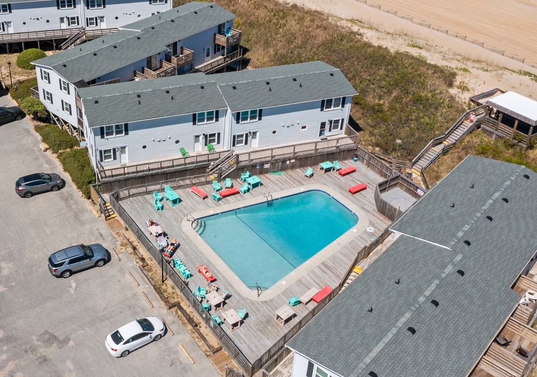 Get ready to hoist the sails and make your way to Windjammer! This newly renovated and tastefully furnished oceanfront condo is the perfect place to drop anchor for your next Outer Banks vacation. Windjammer is a townhouse-style end unit, providing maximum ocean views, additional privacy, and easy access to the beach. Enjoy breathtaking sunrises and stunning views of the Atlantic Ocean from the private balcony on the top level. Guests have access to a large outdoor community pool and a grilling area perfect for picnics. The pool area leads directly to an oceanfront gazebo and a dune walkover that makes getting to and from the beach hassle-free. Conveniently located at Milepost 15 in Nags Head, you'll be less than a mile from shopping, dining, and grocery stores.