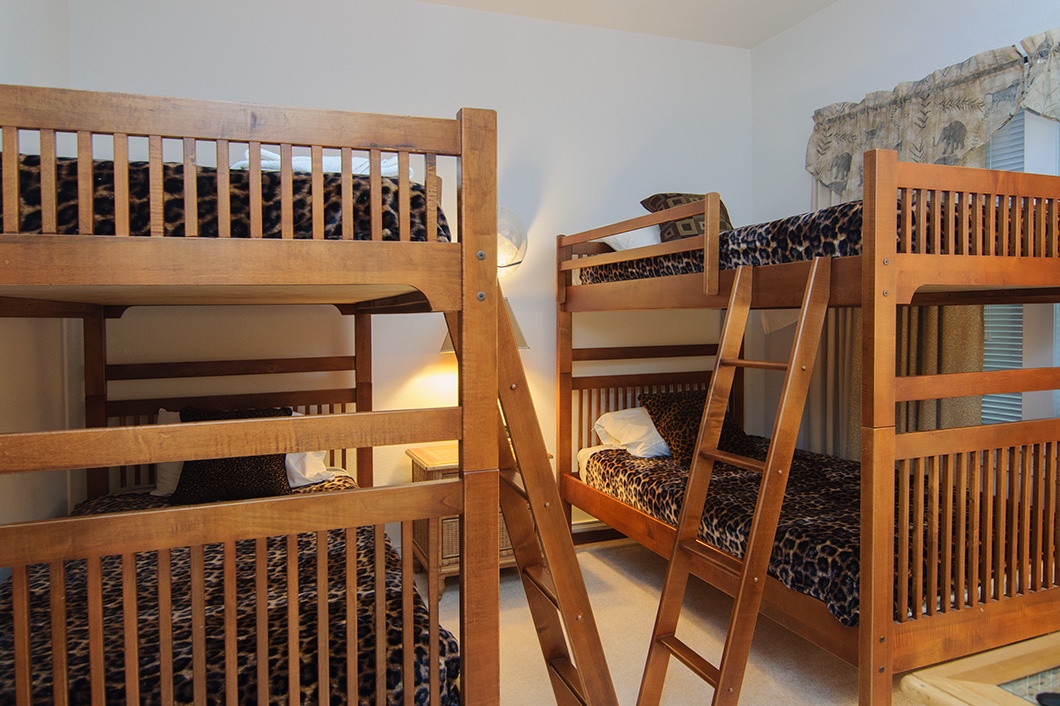 We had two adults and 3 teens staying here for a week. We had everything we needed for a week`s stay. The kitchen is well equipped, beds were comfortable, layout great and location perfect, no elevators needed to get our stuff in the condo. At first we thought no tvs in the bedrooms (other than the bunk room) was inconvenient, however I discovered that I actually liked not having tv in the bedroom. Also good to note that the animal theming was not as over the top as I originally thought from the online pictures. Great place to stay with the family for the week. Also wanted to note that we didn`t hear other occupants of the complex during our stay.- Reviewed On: 7/11/2023