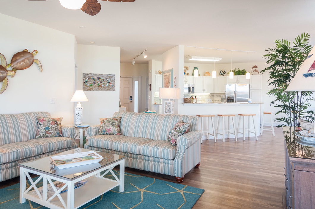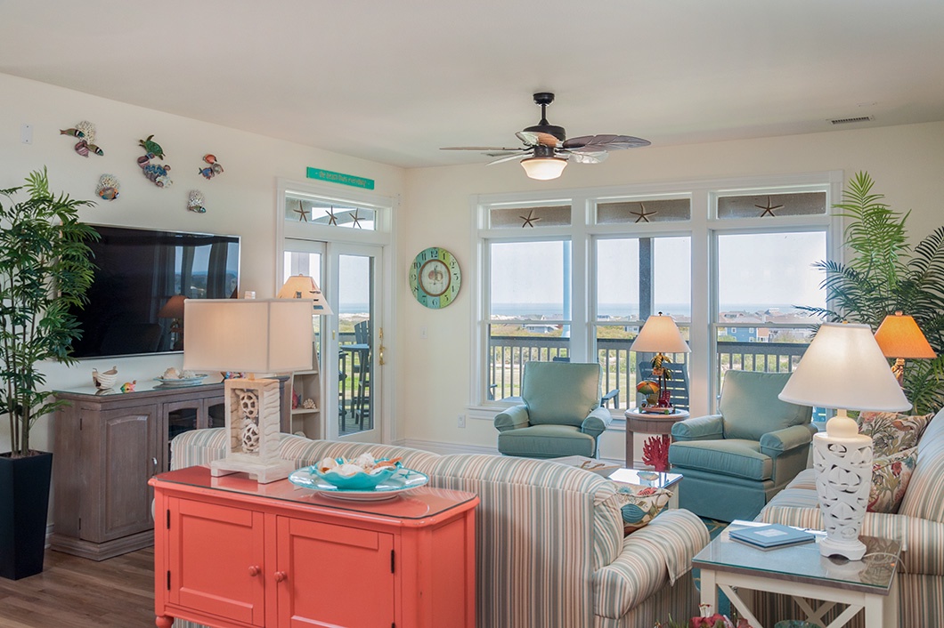 A Point of View features ocean views, golf course views, and first class comfort adding up to a wonderful vacation. The open-concept layout maximizes the space for gathering and takes full advantage of the horizon ocean views. Every morning you can wake up to a beautiful sunrise over the ocean.