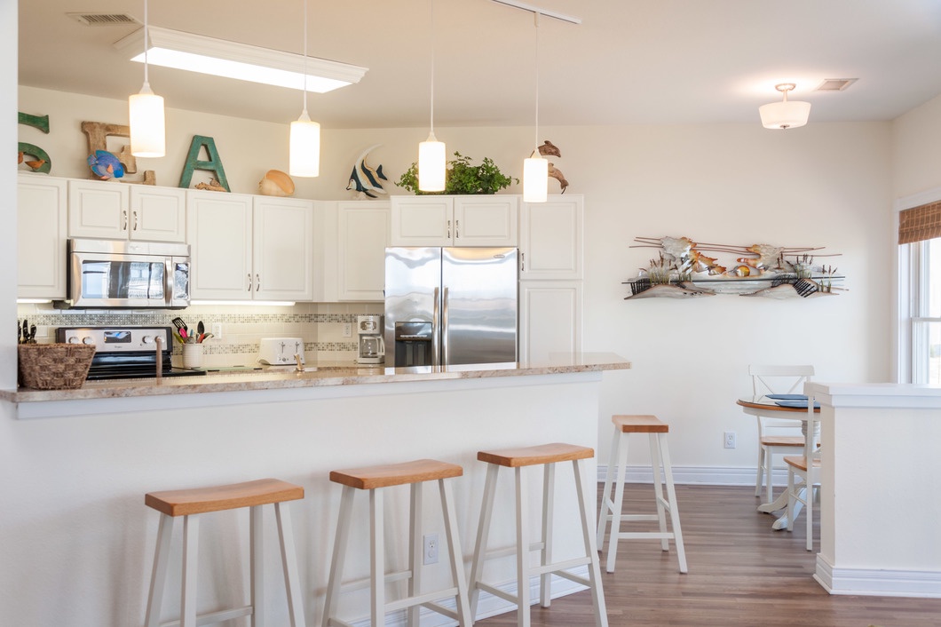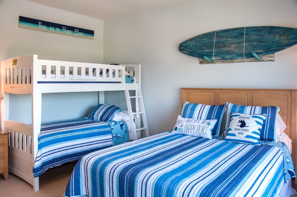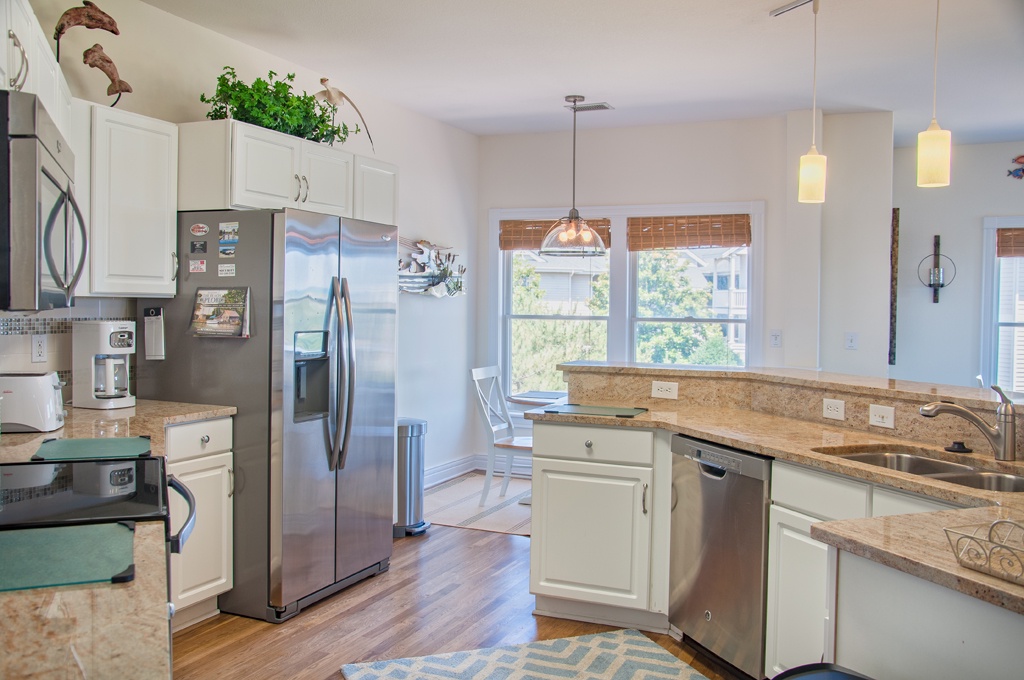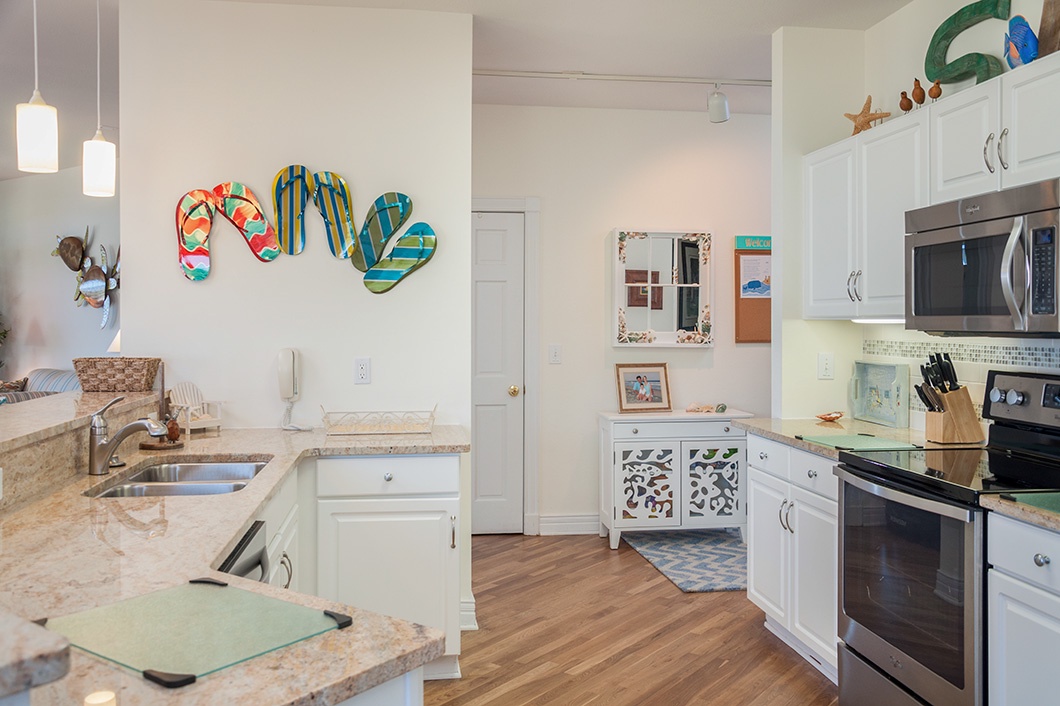 After a day of fun in the sun, retreat to the primary bedroom with a king bed and a private bath that includes a double vanity, shower and separate tub. A second ensuite with king bed and third bedroom with queen and bunkbed perfect for vacationing with family and friends. Enjoy preparing meals in the well equipped kitchen.