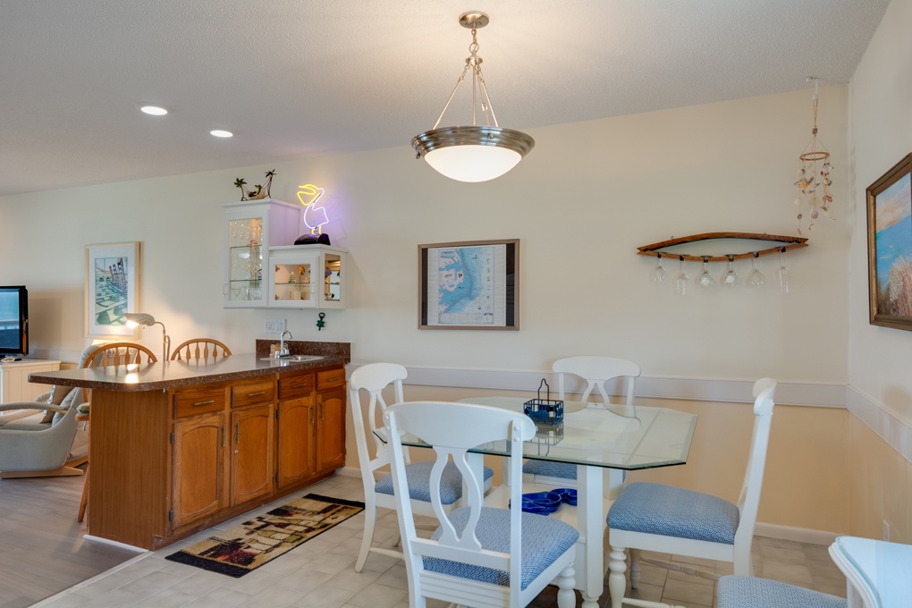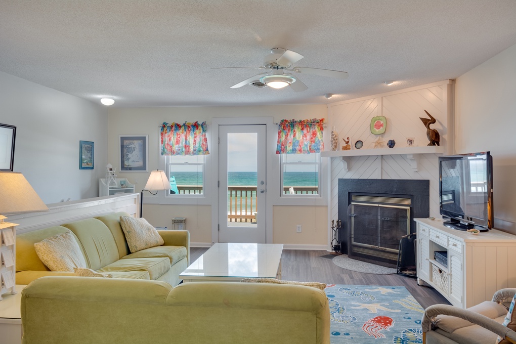 Enjoy the spectacular oceanfront from this premier Whispering Sands townhome. Relax on either of the two private decks --one off the living room and one off the master bedroom. The master bedroom offers a spacious bathroom with a custom-tiled walk-in shower. Whispering Sands #5 is a private, quiet end unit with the best direct access to the beach, pool and ocean sun deck. The beach is one of the finest in Nags Head. Take a dip in the ocean or the oceanfront pool or just relax on the large sun deck and enjoy the view. Fall asleep to the sound of the ocean waves. You will delight in watching the dolphins frolic in the ocean from the living room deck. WS05 is close to dining and shopping.